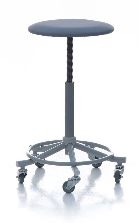 Табурет винтовой на металлическом каркасе (мягкий, с опорой для ног, колеса)